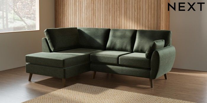 7.2.10 Wilson Medium Corner Chaise - Left Hand Luxe Chenille Mid Green Retro Tapered - Mid | Made Click here to use our website with more accessibility support, for example screen readers
