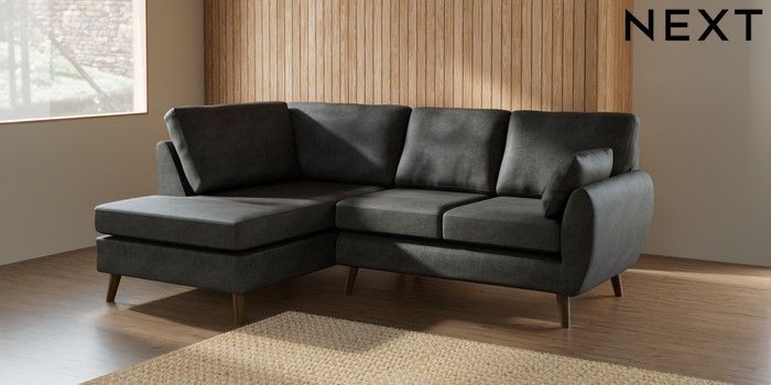 7.2.10 Wilson Medium Corner Chaise - Left Hand Monza Faux Leather Easy Clean Dark Grey Retro Tapered - Mid | Made Click here to use our website with more accessibility support, for example screen readers