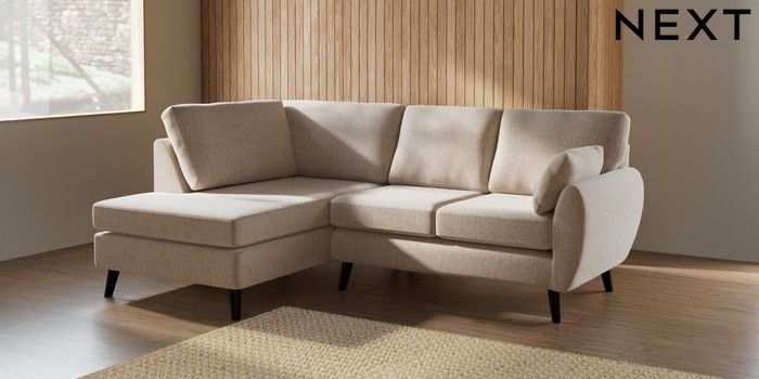 7.2.10 Wilson Medium Corner Chaise - Left Hand Multi Weave Mid Natural Retro Tapered - Dark | Made Click here to use our website with more accessibility support, for example screen readers