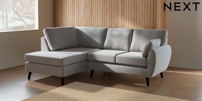 7.2.10 Wilson Medium Corner Chaise - Left Hand Natural Mix Light Grey Retro Tapered - Dark | Made Click here to use our website with more accessibility support, for example screen readers