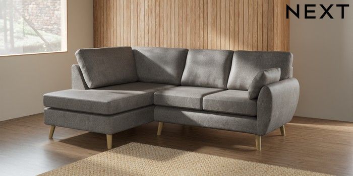 7.2.10 Wilson Medium Corner Chaise - Left Hand Plush Chenille Light Grey Retro Tapered - Light | Made Click here to use our website with more accessibility support, for example screen readers