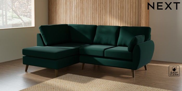 7.2.10 Wilson Medium Corner Chaise - Left Hand Plush Velvet Easy Clean Bottle Green Retro Tapered - Mid | Made Click here to use our website with more accessibility support, for example screen readers
