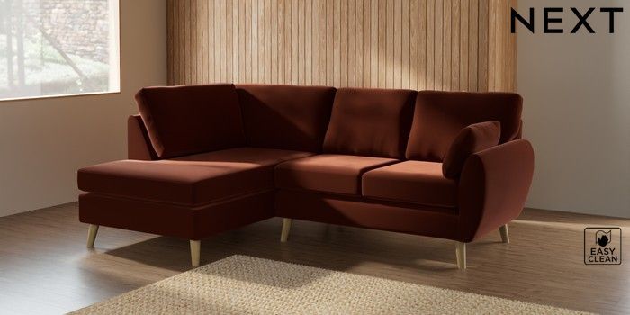7.2.10 Wilson Medium Corner Chaise - Left Hand Plush Velvet Easy Clean Ginger Orange Retro Tapered - Light | Made Click here to use our website with more accessibility support, for example screen readers