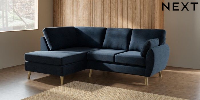 7.2.10 Wilson Medium Corner Chaise - Left Hand Ripple Chenille Dark Blue Retro Tapered - Light | Made Click here to use our website with more accessibility support, for example screen readers
