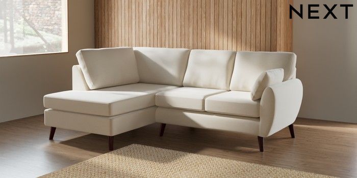 7.2.10 Wilson Medium Corner Chaise - Left Hand Ripple Chenille Oyster Retro Tapered - Dark Brown | Made Click here to use our website with more accessibility support, for example screen readers