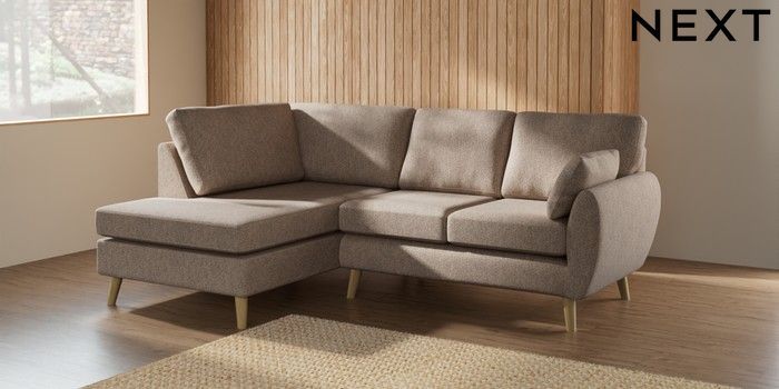 7.2.10 Wilson Medium Corner Chaise - Left Hand Tweedy Chenille Mid Natural Retro Tapered - Light | Made Click here to use our website with more accessibility support, for example screen readers