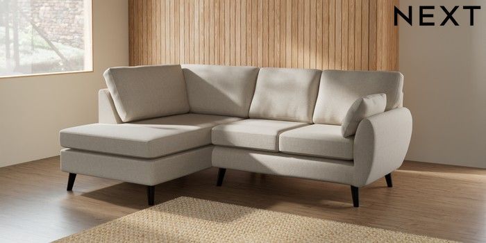 7.2.10 Wilson Medium Corner Chaise - Left Hand Tweedy Chenille Oyster Retro Tapered - Dark | Made Click here to use our website with more accessibility support, for example screen readers