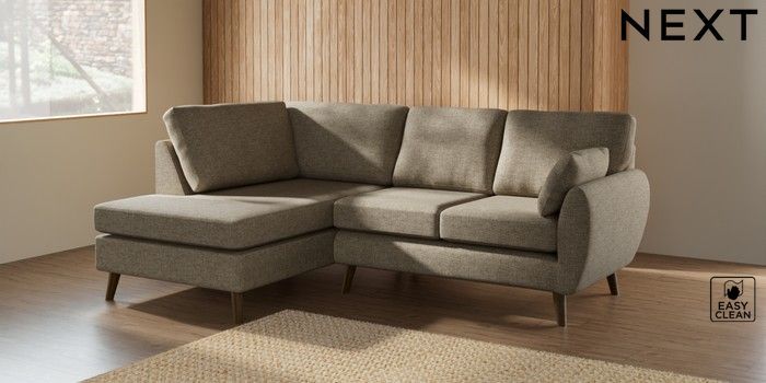 7.2.10 Wilson Medium Corner Chaise - Left Hand Woven Chenille Easy Clean Mid Natural Retro Tapered - Mid | Made Click here to use our website with more accessibility support, for example screen readers