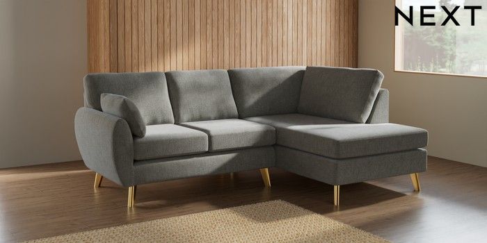 7.2.10 Wilson Medium Corner Chaise - Right Hand Chunky Chenille Light Grey Metal Tapered - Gold | Made Click here to use our website with more accessibility support, for example screen readers