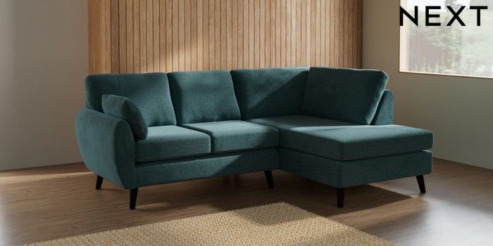 7.2.10 Wilson Medium Corner Chaise - Right Hand Chunky Chenille Mid Teal Green Retro Tapered - Dark | Made Click here to use our website with more accessibility support, for example screen readers