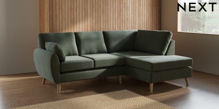 7.2.10 Wilson Medium Corner Chaise - Right Hand Chunky Texture Mid Forest Green Retro Tapered - Light | Made Click here to use our website with more accessibility support, for example screen readers