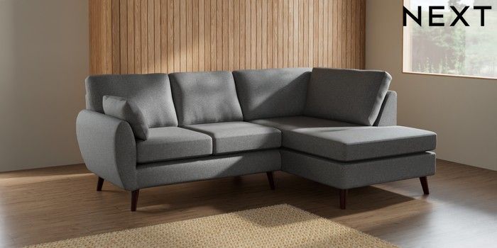 7.2.10 Wilson Medium Corner Chaise - Right Hand Chunky Weave Mid Grey Retro Tapered - Dark Brown | Made Click here to use our website with more accessibility support, for example screen readers