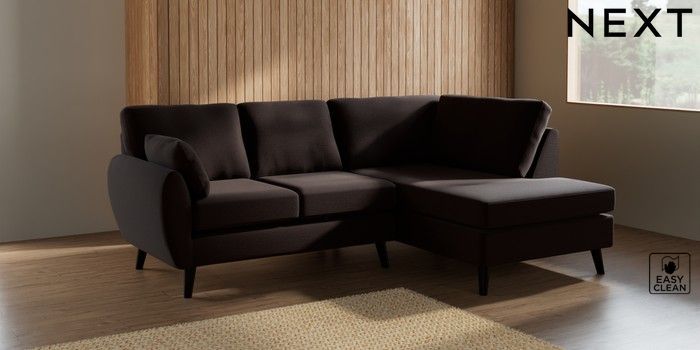 7.2.10 Wilson Medium Corner Chaise - Right Hand Fine Chenille Easy Clean Chocolate Brown Retro Tapered - Dark | Made Click here to use our website with more accessibility support, for example screen readers