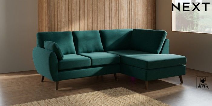 7.2.10 Wilson Medium Corner Chaise - Right Hand Fine Chenille Easy Clean Dark Juniper Green Retro Tapered - Mid | Made Click here to use our website with more accessibility support, for example screen readers