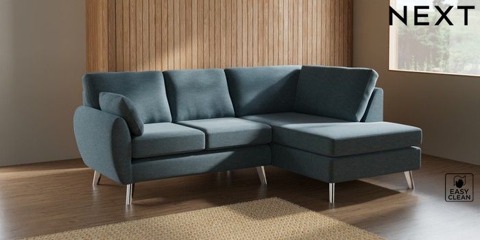 7.2.10 Wilson Medium Corner Chaise - Right Hand Fine Chenille Easy Clean Mid Blue Metal Tapered - Chrome | Made Click here to use our website with more accessibility support, for example screen readers
