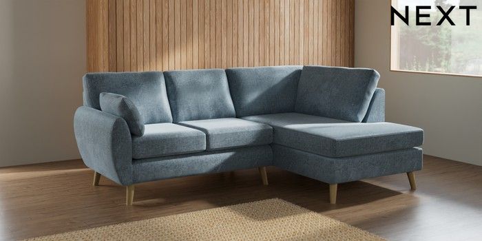 7.2.10 Wilson Medium Corner Chaise - Right Hand Plush Chenille Light Blue Retro Tapered - Light | Made Click here to use our website with more accessibility support, for example screen readers