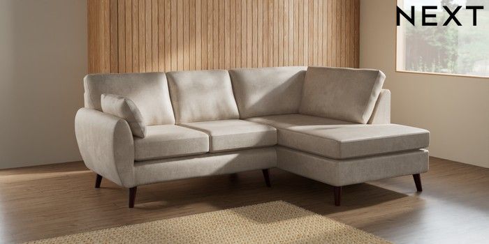 7.2.10 Wilson Medium Corner Chaise - Right Hand Plush Chenille Oyster Retro Tapered - Dark Brown | Made Click here to use our website with more accessibility support, for example screen readers