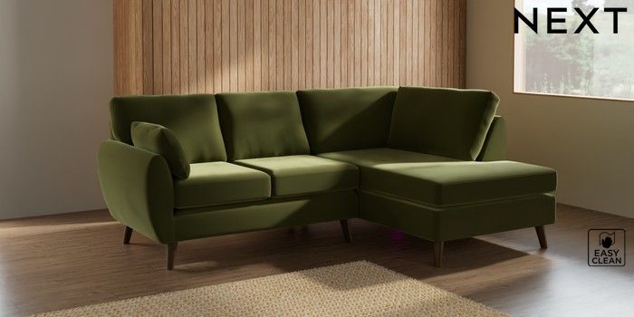 7.2.10 Wilson Medium Corner Chaise - Right Hand Plush Velvet Easy Clean Mid Olive Green Retro Tapered - Mid | Made Click here to use our website with more accessibility support, for example screen readers