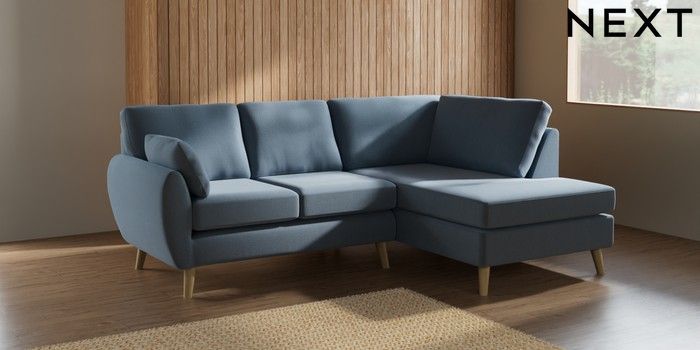 7.2.10 Wilson Medium Corner Chaise - Right Hand Relaxed Linen Look Mid Blue Retro Tapered - Light | Made Click here to use our website with more accessibility support, for example screen readers