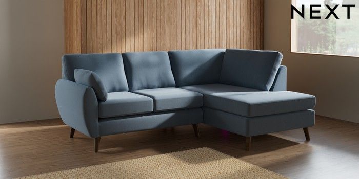 7.2.10 Wilson Medium Corner Chaise - Right Hand Relaxed Linen Look Mid Blue Retro Tapered - Mid | Made Click here to use our website with more accessibility support, for example screen readers