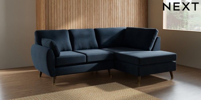 7.2.10 Wilson Medium Corner Chaise - Right Hand Ripple Chenille Dark Blue Low Retro Tapered Metal Cap - Mid | Made Click here to use our website with more accessibility support, for example screen readers