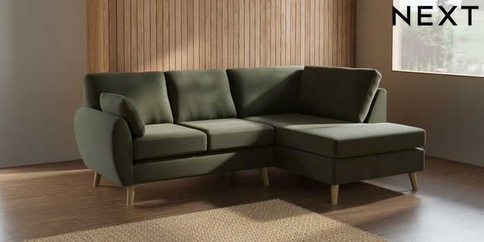 7.2.10 Wilson Medium Corner Chaise - Right Hand Ripple Chenille Mid Moss Green Retro Tapered - Light | Made Click here to use our website with more accessibility support, for example screen readers