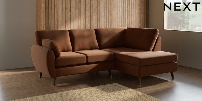 7.2.10 Wilson Medium Corner Chaise - Right Hand Ripple Chenille Mid Rust Brown Low Retro Tapered Metal Cap - Mid | Made Click here to use our website with more accessibility support, for example screen readers