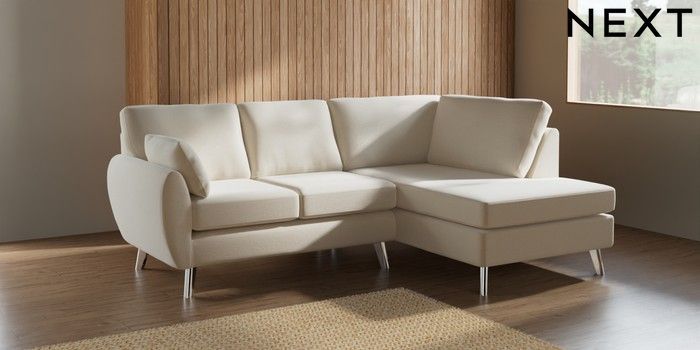7.2.10 Wilson Medium Corner Chaise - Right Hand Ripple Chenille Oyster Metal Tapered - Chrome | Made Click here to use our website with more accessibility support, for example screen readers