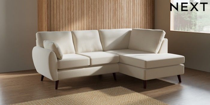 7.2.10 Wilson Medium Corner Chaise - Right Hand Ripple Chenille Oyster Retro Tapered - Dark Brown | Made Click here to use our website with more accessibility support, for example screen readers