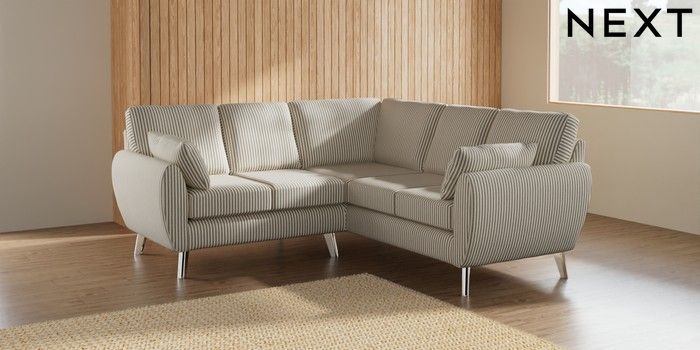 7.2.10 Wilson Small Corner Sofa - Universal Chenille Stripe Moss Green Metal Tapered - Chrome | Made Click here to use our website with more accessibility support, for example screen readers