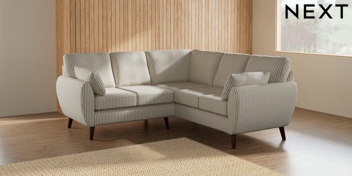 7.2.10 Wilson Small Corner Sofa - Universal Chenille Stripe Moss Green Retro Tapered - Dark Brown | Made Click here to use our website with more accessibility support, for example screen readers