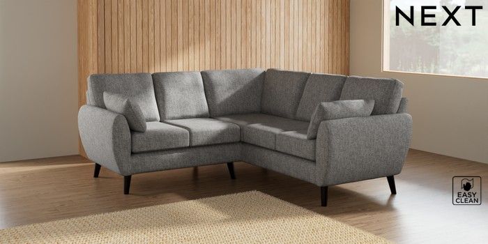 7.2.10 Wilson Small Corner Sofa - Universal Chunky Boucle Easy Clean Light Grey Retro Tapered - Dark | Made Click here to use our website with more accessibility support, for example screen readers