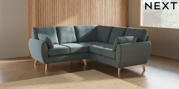 7.2.10 Wilson Small Corner Sofa - Universal Chunky Marl Mid Blue Metal Tapered - Gold | Made Click here to use our website with more accessibility support, for example screen readers