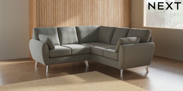 7.2.10 Wilson Small Corner Sofa - Universal Chunky Texture Dove Metal Tapered - Chrome | Made Click here to use our website with more accessibility support, for example screen readers