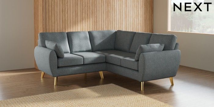 7.2.10 Wilson Small Corner Sofa - Universal Chunky Weave Mid Blue Metal Tapered - Gold | Made Click here to use our website with more accessibility support, for example screen readers