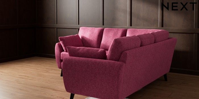 7.2.10 Wilson Small Corner Sofa - Universal Cotswold Chenille Dark Raspberry Pink Retro Tapered - Dark | Made Click here to use our website with more accessibility support, for example screen readers