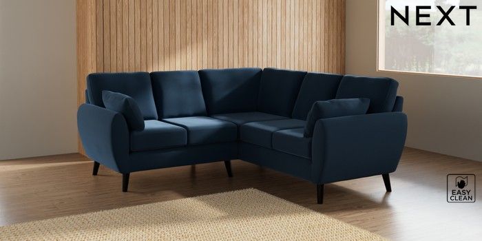 7.2.10 Wilson Small Corner Sofa - Universal Plush Velvet Easy Clean Airforce Blue Retro Tapered - Dark | Made Click here to use our website with more accessibility support, for example screen readers