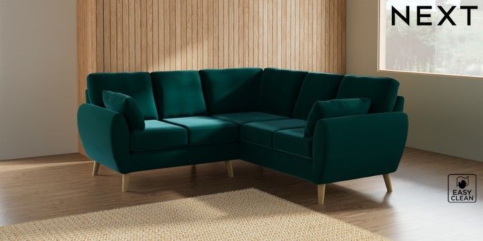 7.2.10 Wilson Small Corner Sofa - Universal Plush Velvet Easy Clean Juniper Green Retro Tapered - Light | Made Click here to use our website with more accessibility support, for example screen readers