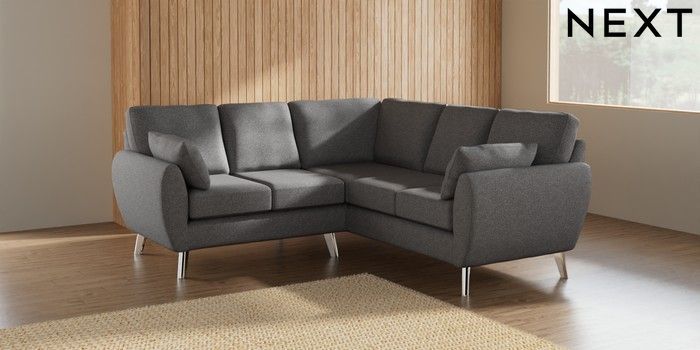 7.2.10 Wilson Small Corner Sofa - Universal Studio Chenille Mid Grey Metal Tapered - Chrome | Made Click here to use our website with more accessibility support, for example screen readers