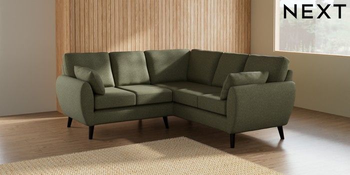 7.2.10 Wilson Small Corner Sofa - Universal Tweedy Chenille Mid Moss Green Retro Tapered - Dark | Made Click here to use our website with more accessibility support, for example screen readers