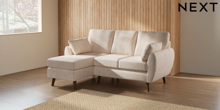 7.2.10 Wilson Small Sofa Chaise - Left Hand Boucle Chenille Oyster Retro Tapered - Mid | Made Click here to use our website with more accessibility support, for example screen readers