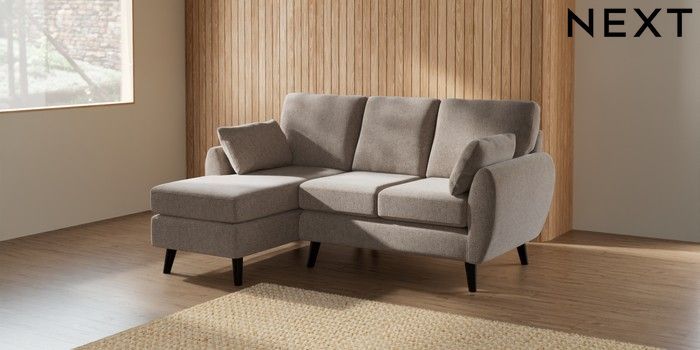 7.2.10 Wilson Small Sofa Chaise - Left Hand Chunky Chenille Light Dove Retro Tapered - Dark | Made Click here to use our website with more accessibility support, for example screen readers