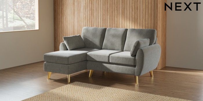 7.2.10 Wilson Small Sofa Chaise - Left Hand Chunky Chenille Light Grey Metal Tapered - Gold | Made Click here to use our website with more accessibility support, for example screen readers