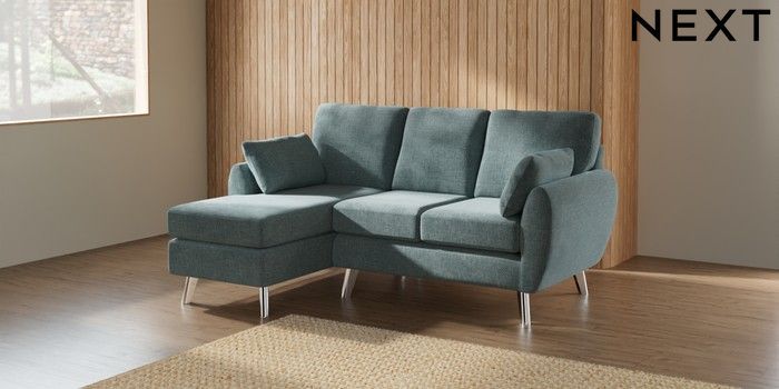 7.2.10 Wilson Small Sofa Chaise - Left Hand Chunky Chenille Light Teal Green Metal Tapered - Chrome | Made Click here to use our website with more accessibility support, for example screen readers