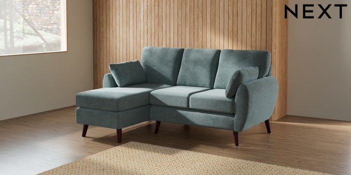 7.2.10 Wilson Small Sofa Chaise - Left Hand Chunky Chenille Light Teal Green Retro Tapered - Dark Brown | Made Click here to use our website with more accessibility support, for example screen readers