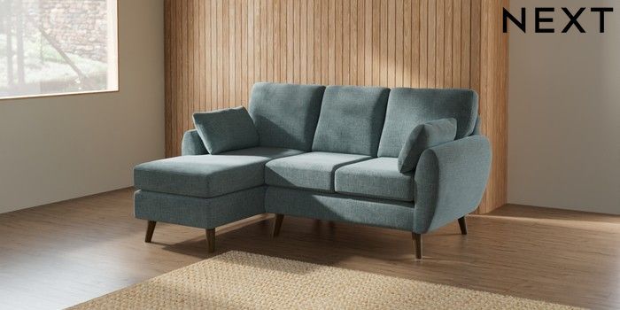 7.2.10 Wilson Small Sofa Chaise - Left Hand Chunky Chenille Light Teal Green Retro Tapered - Mid | Made Click here to use our website with more accessibility support, for example screen readers