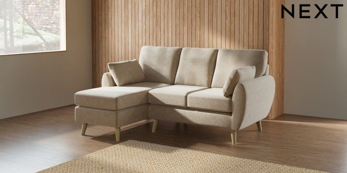7.2.10 Wilson Small Sofa Chaise - Left Hand Chunky Weave Cream Retro Tapered - Light | Made Click here to use our website with more accessibility support, for example screen readers