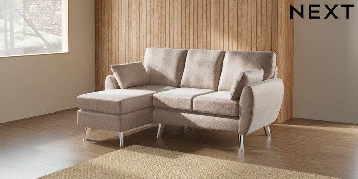 7.2.10 Wilson Small Sofa Chaise - Left Hand Cotswold Chenille Light Natural Metal Tapered - Chrome | Made Click here to use our website with more accessibility support, for example screen readers