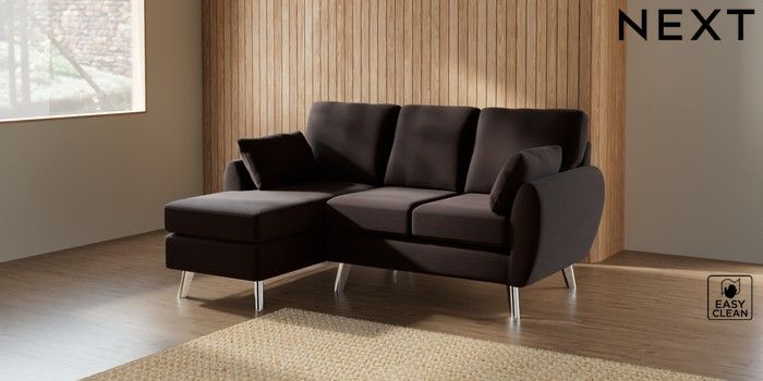7.2.10 Wilson Small Sofa Chaise - Left Hand Fine Chenille Easy Clean Chocolate Brown Metal Tapered - Chrome | Made Click here to use our website with more accessibility support, for example screen readers