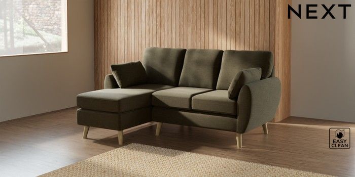 7.2.10 Wilson Small Sofa Chaise - Left Hand Fine Chenille Easy Clean Dark Moss Green Retro Tapered - Light | Made Click here to use our website with more accessibility support, for example screen readers